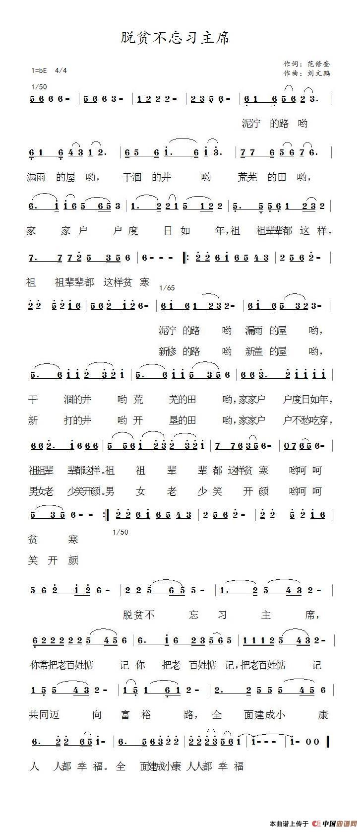 关于《脱贫不忘习主席》曲谱的评论