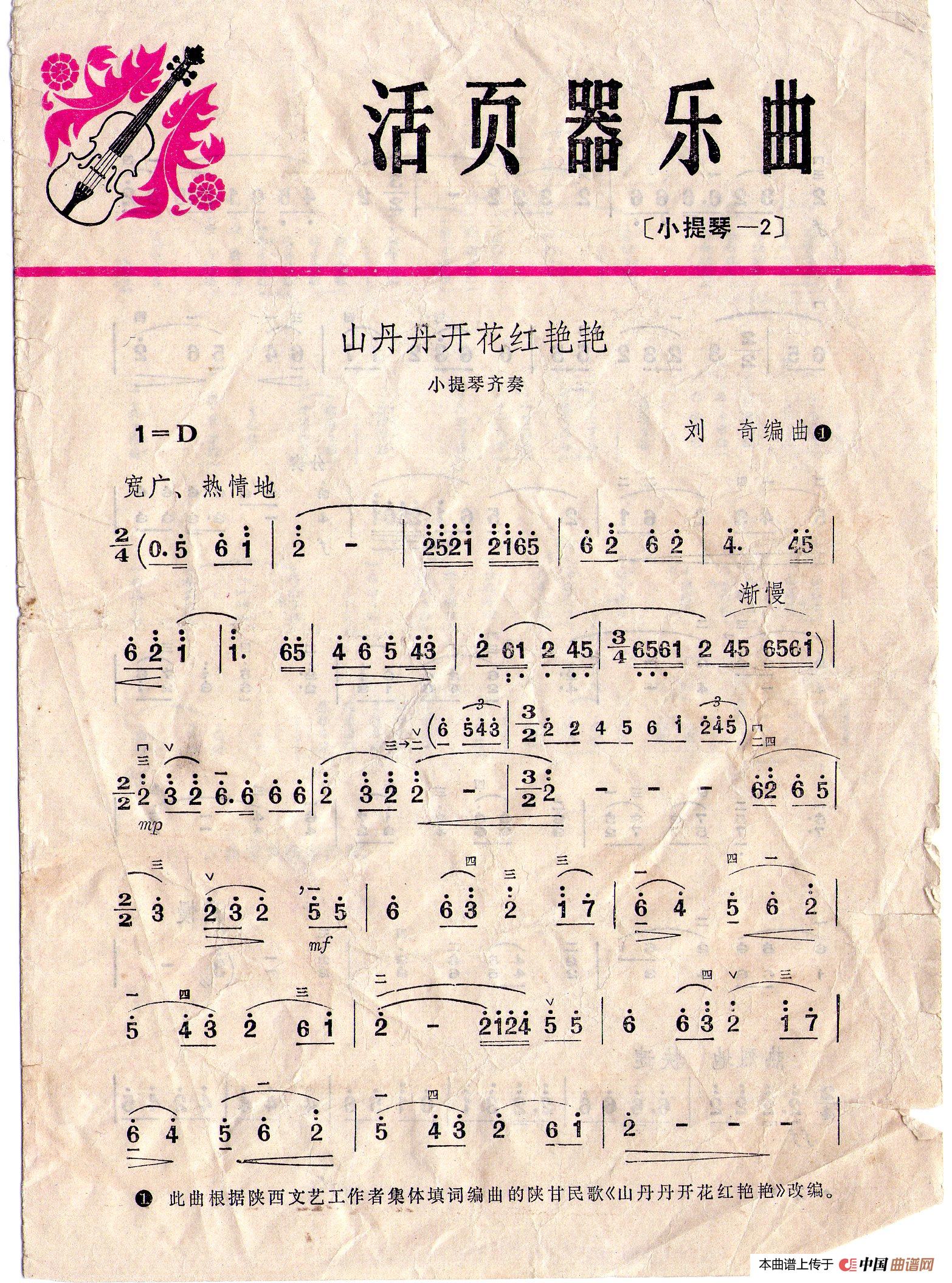 山丹丹开花红艳艳(小提琴齐奏简谱)