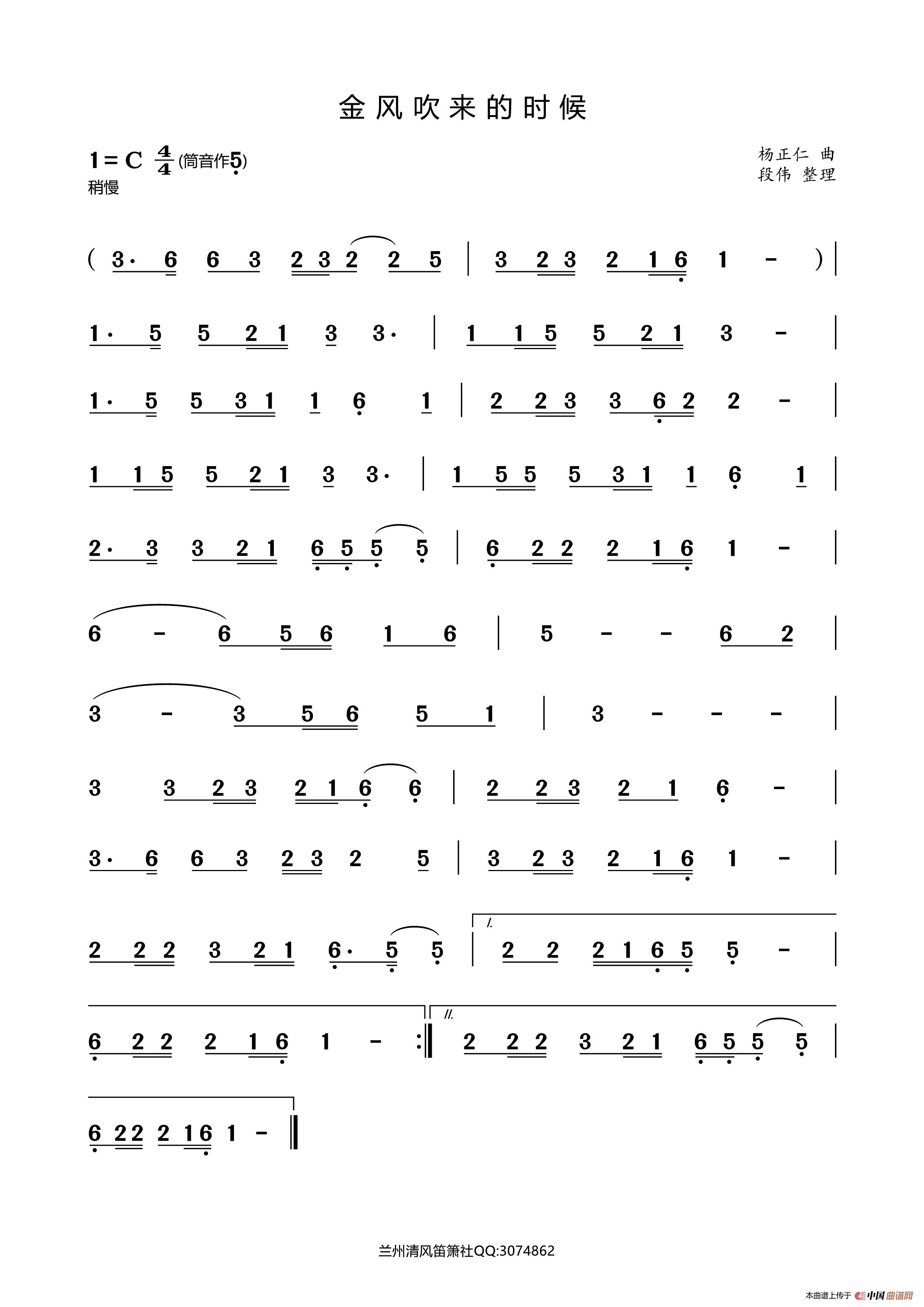 关于《金风吹来的时候》曲谱的评论