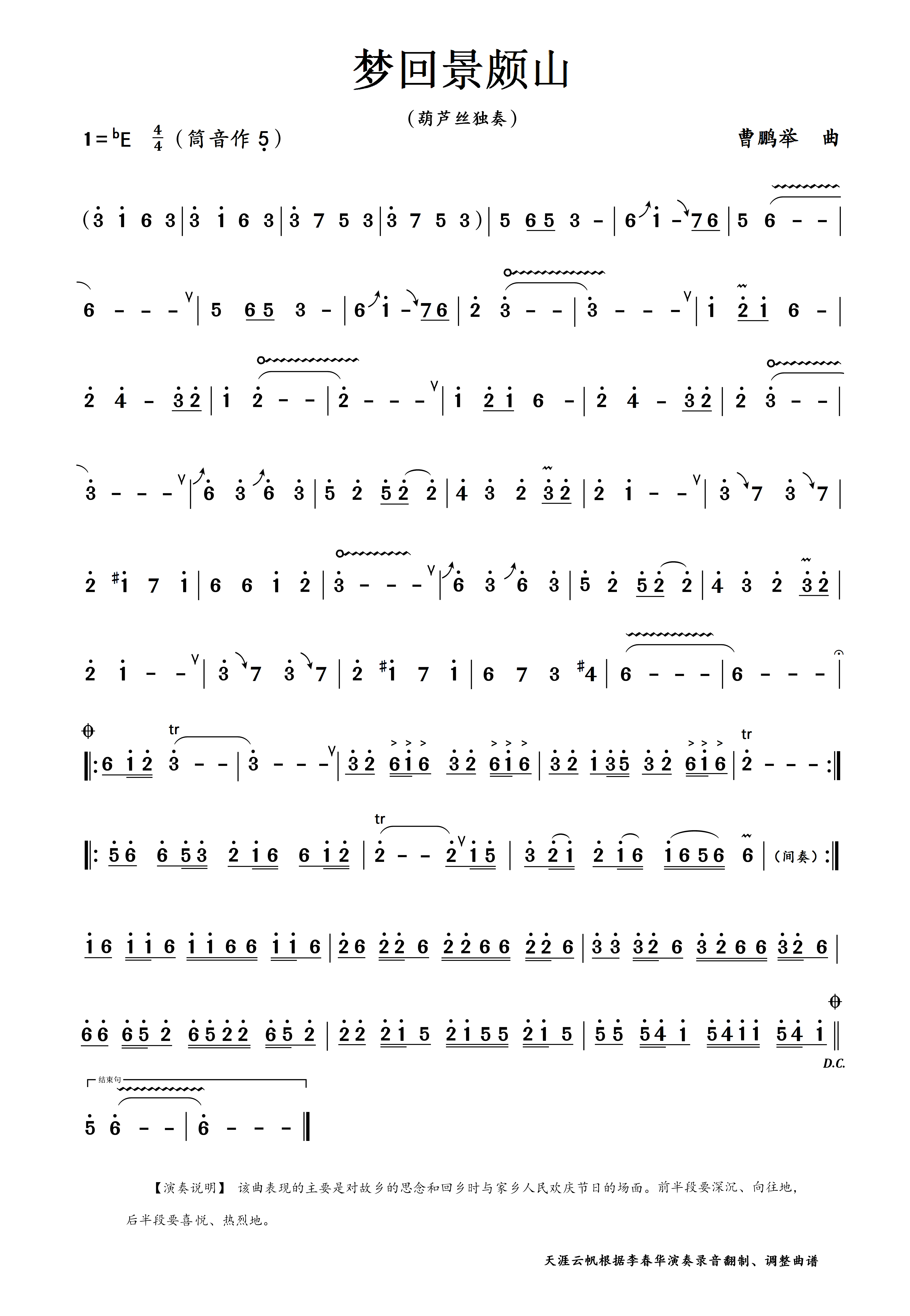 根据李春华演奏录音翻制、调整曲谱
