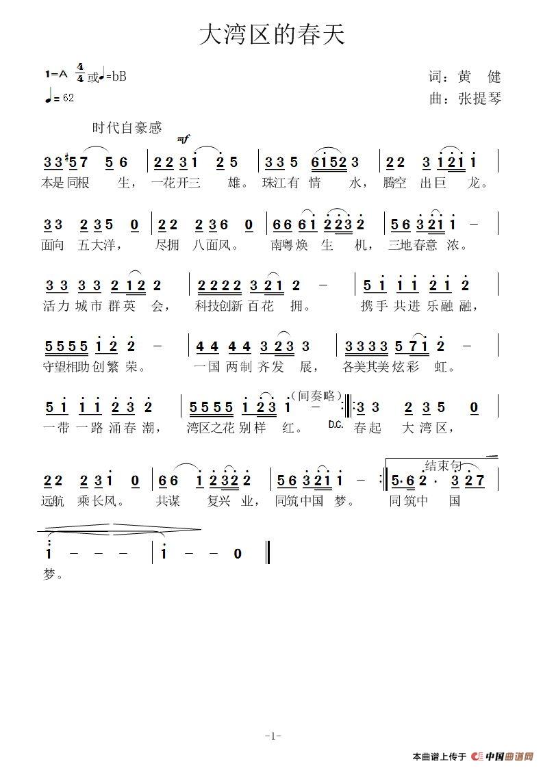 关于《大湾区的春天》曲谱的评论