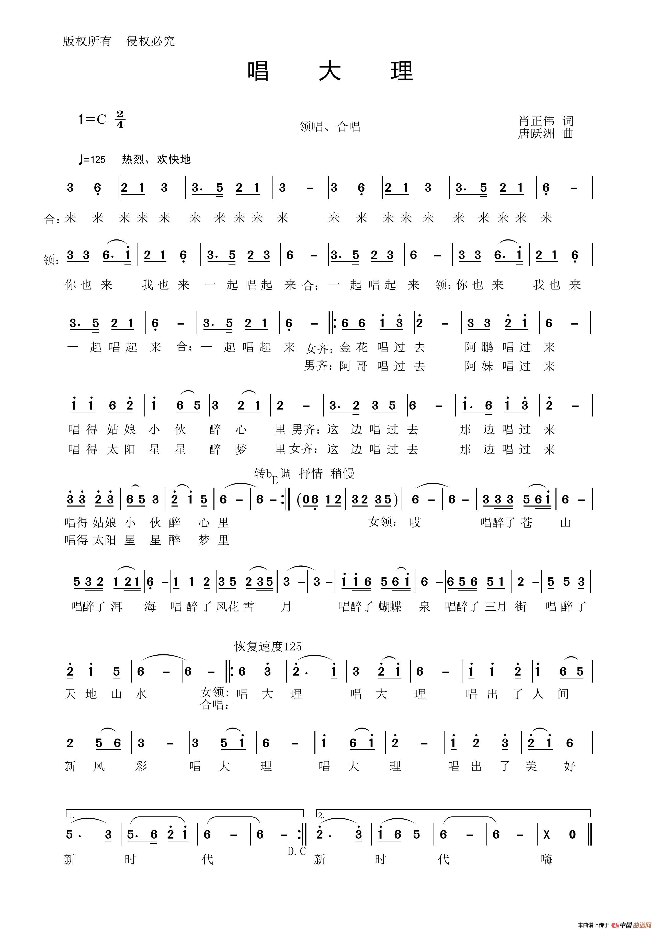 提示:在曲谱图片上单击右键,选择"图片另存为..."即可将曲谱保存到您的电脑中,打印时候可将图片插入到WORD中,调整合适大小打印即可。
