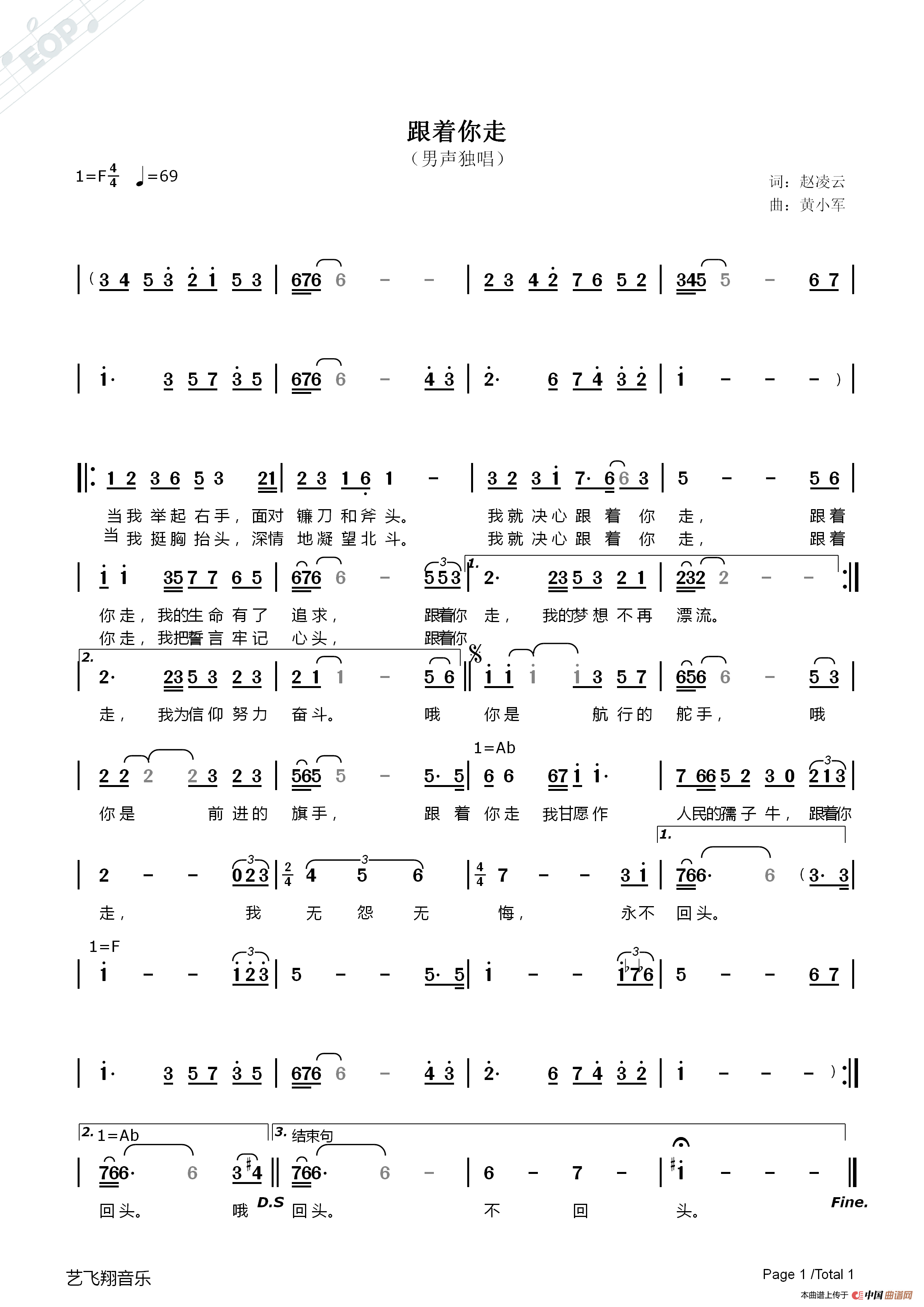 1. 当我举起右手,面对镰刀和斧头。我就决心跟着你走,跟着你走,我的生命有了追求,跟着你走,我的梦想不再漂流。
