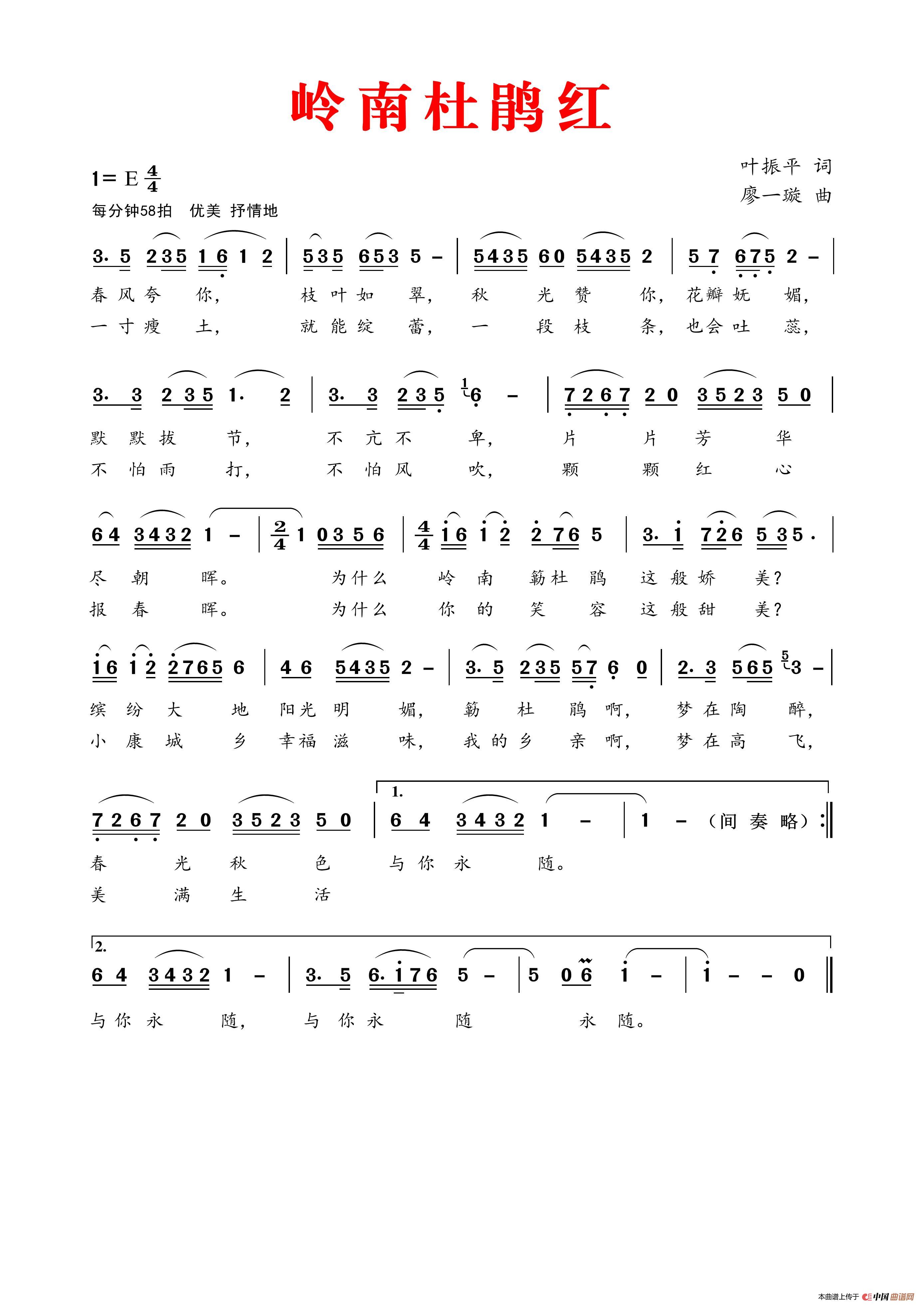 关于《岭南杜鹃红》曲谱的评论