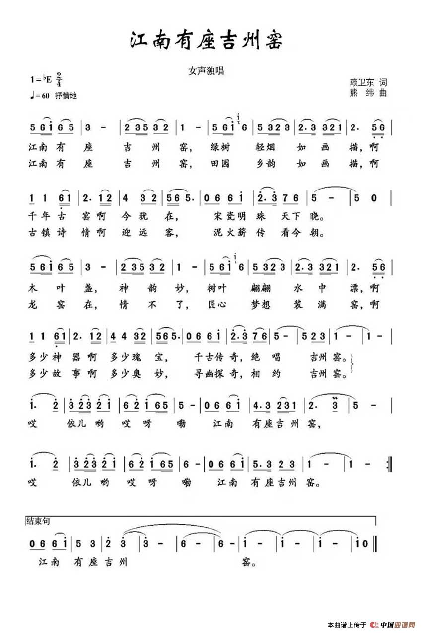 关于《江南有座吉州窑》曲谱的评论