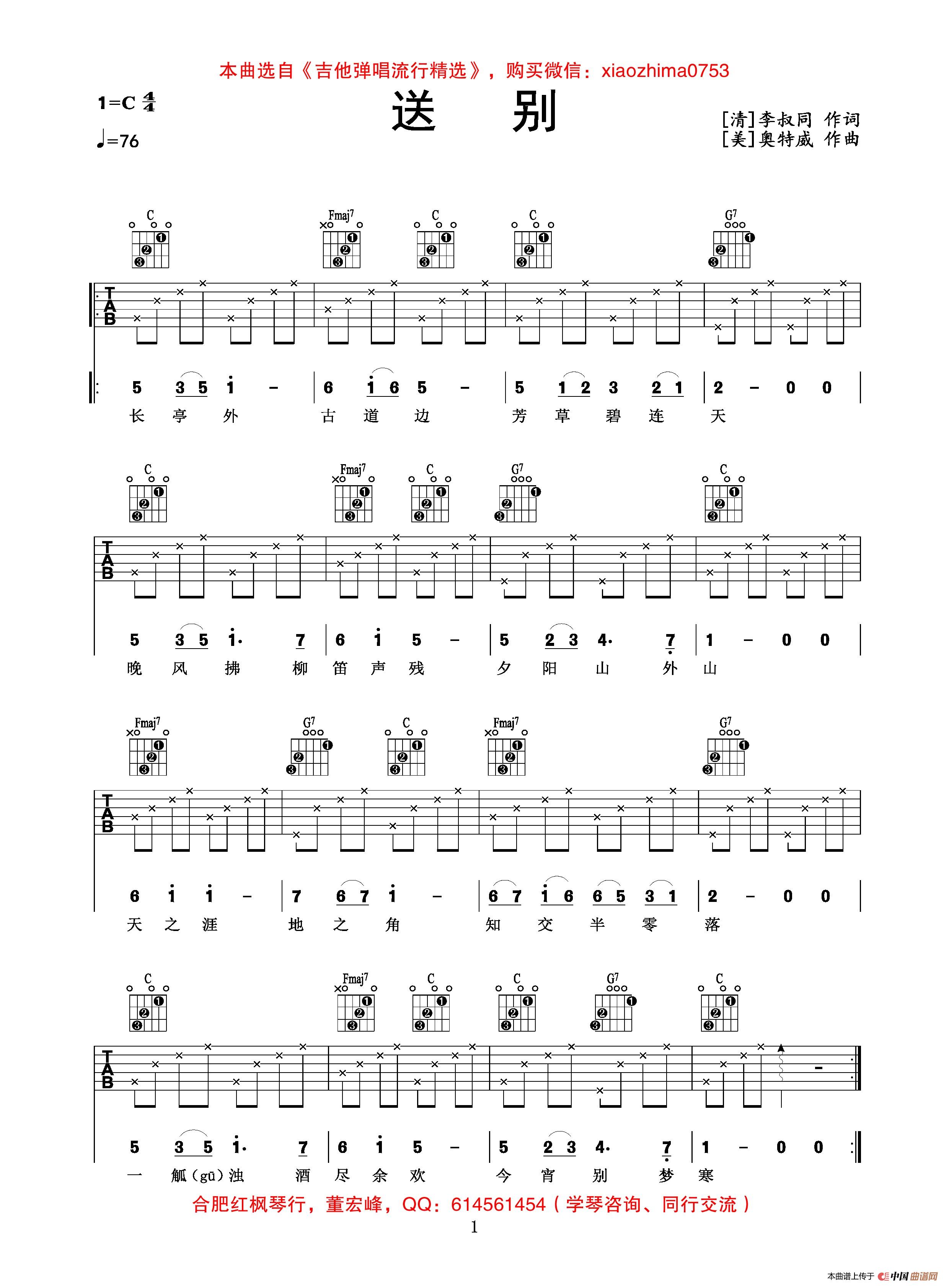 关于《送别 C调 董宏峰 编配》曲谱的评论