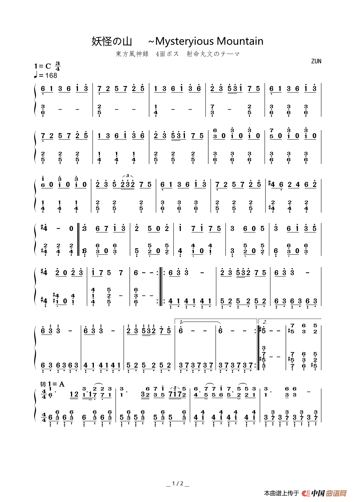 关于《妖怪の山~Mysteryious Mountain》曲谱的评论
