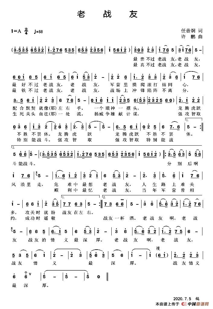 关于《老战友》曲谱的评论