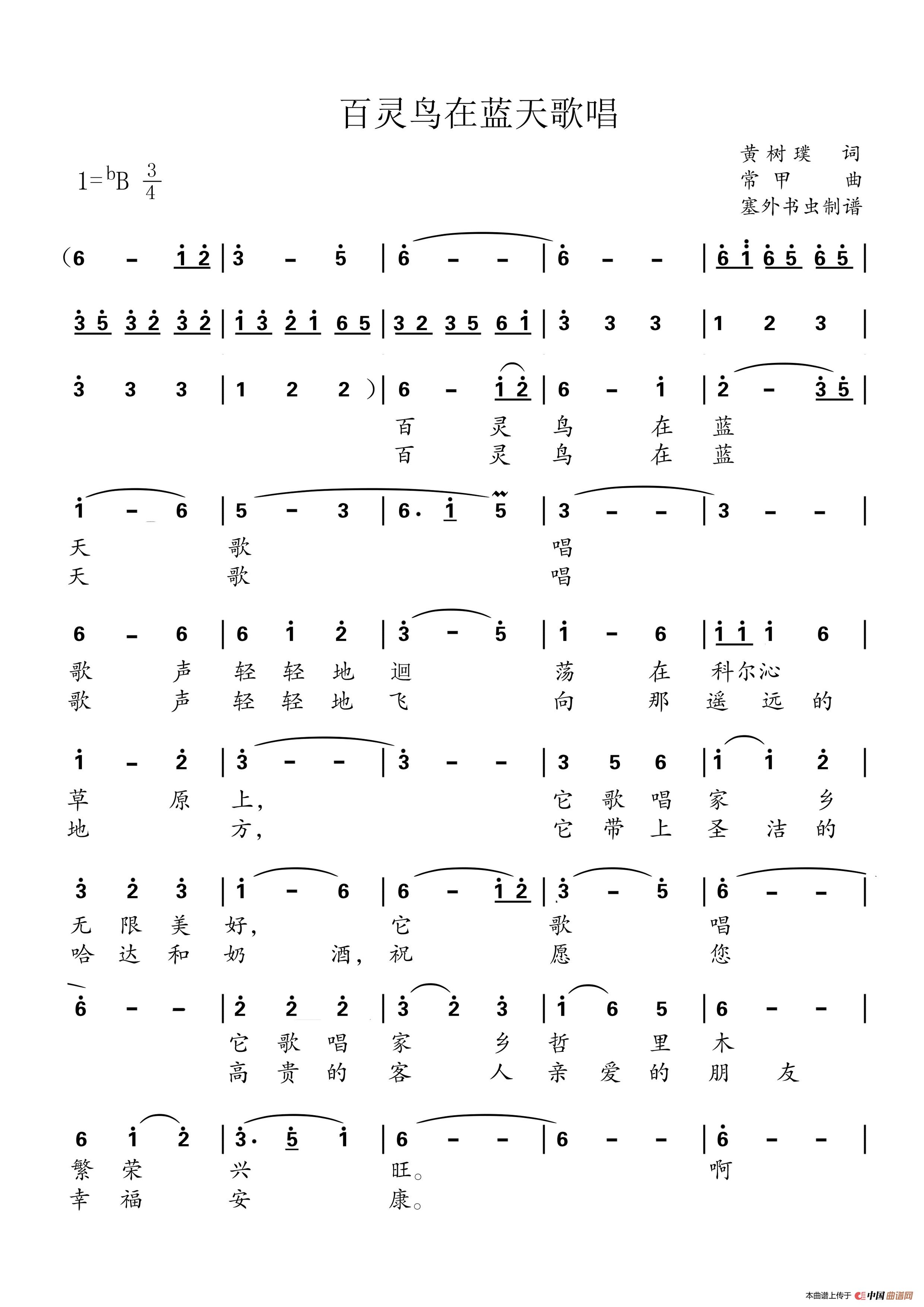 关于《百灵鸟在蓝天歌唱》曲谱的评论