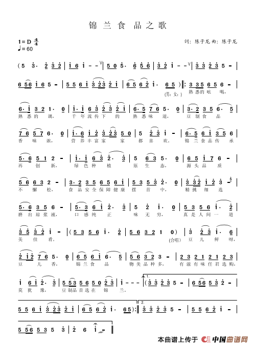 关于《锦兰食品之歌》曲谱的评论