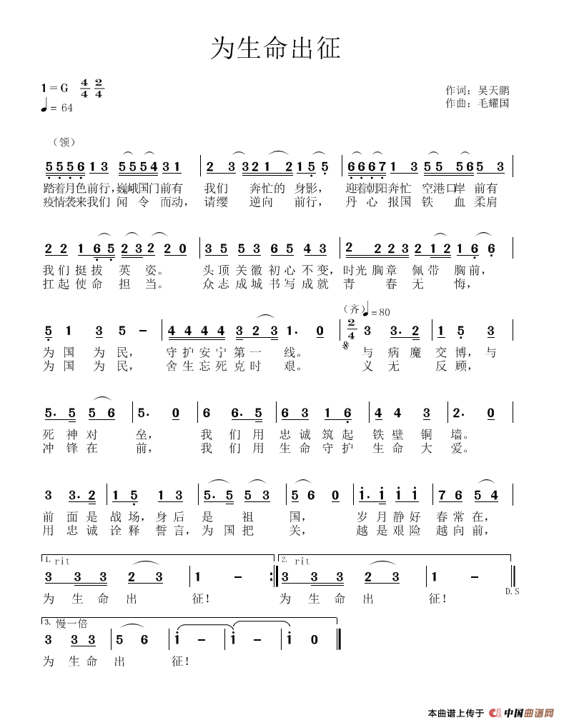 关于《为生命出征》曲谱的评论