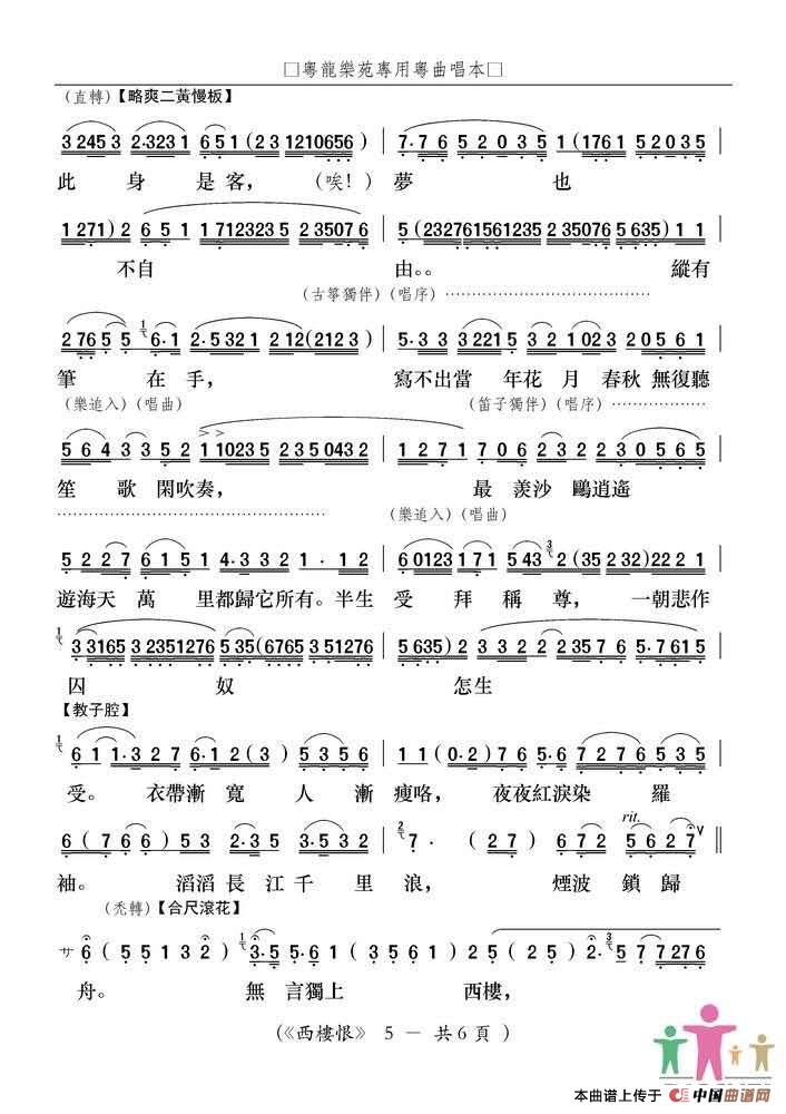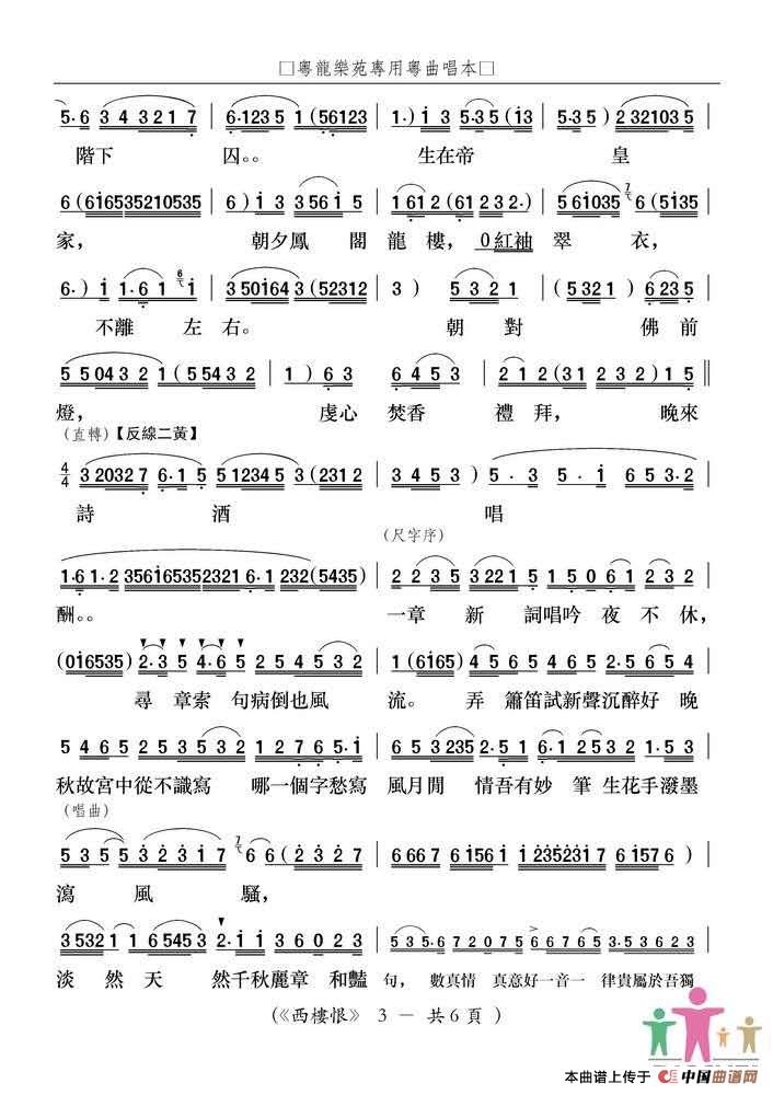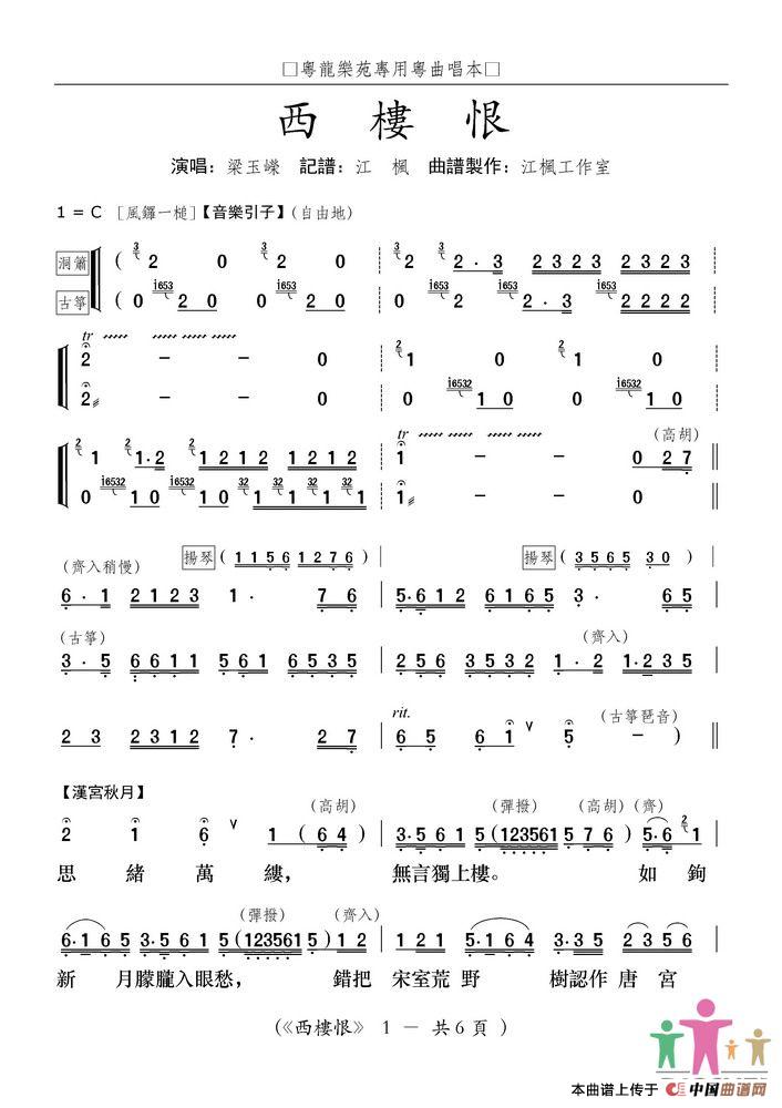 关于《西楼恨》曲谱的评论
