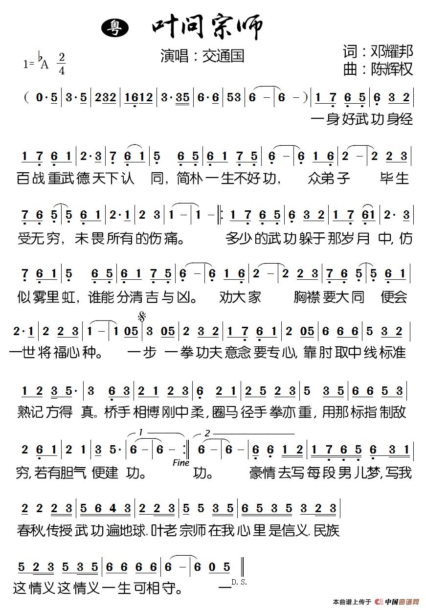 关于《 叶问宗师》曲谱的评论