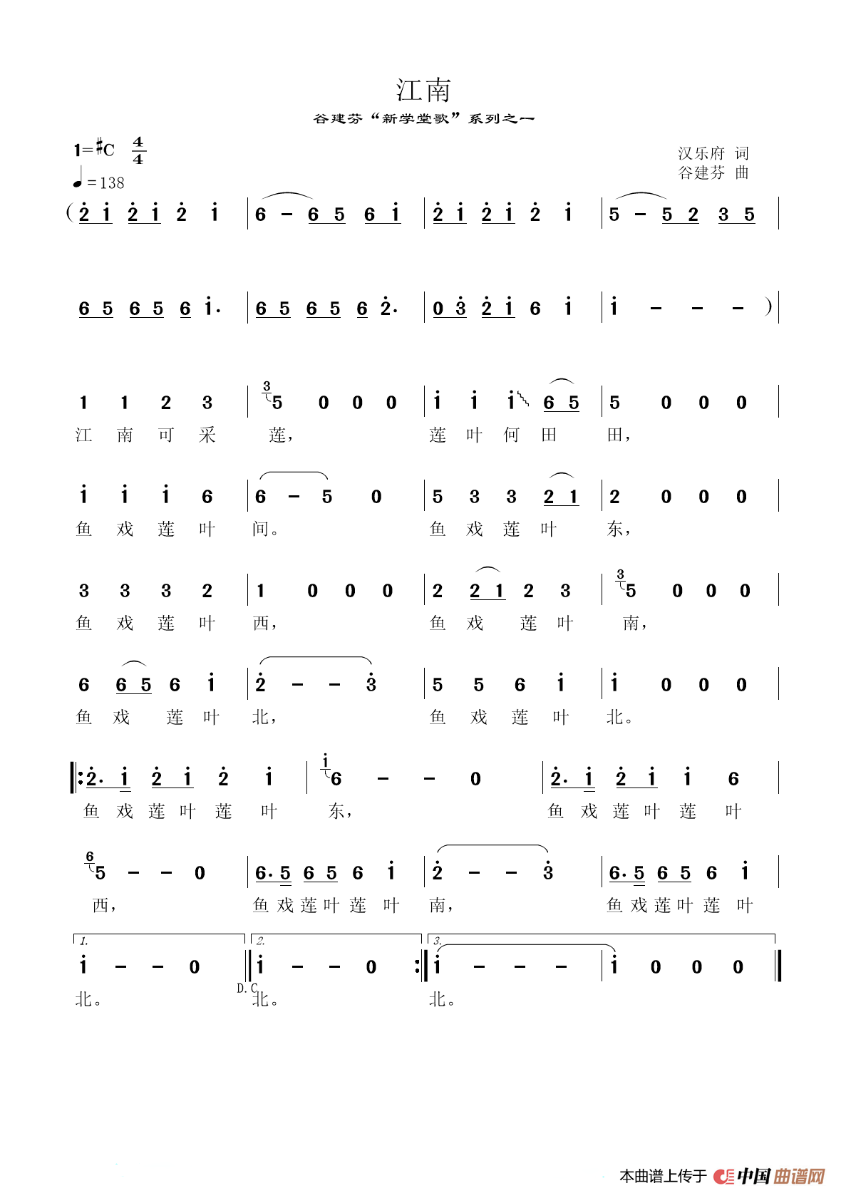 这是一首二段体歌曲,节奏活泼、明快,表现了采莲时的情景和采莲人欢乐的心情。儿童演唱时可以想象自己就像是莲花池中的一群小鱼,在荷叶间游来游去,不停地跟采莲人捉迷藏,忽东忽西,忽南忽北,玩儿得太痛快了。伴奏中第二、四小节休止符位置,乐队奏出两个单音,形象地表现鱼儿露出头来望一望采莲人在哪里的情景。演唱中应想象鱼儿穿梭戏水和探头探脑顽皮的情景,就会唱得更有趣味。