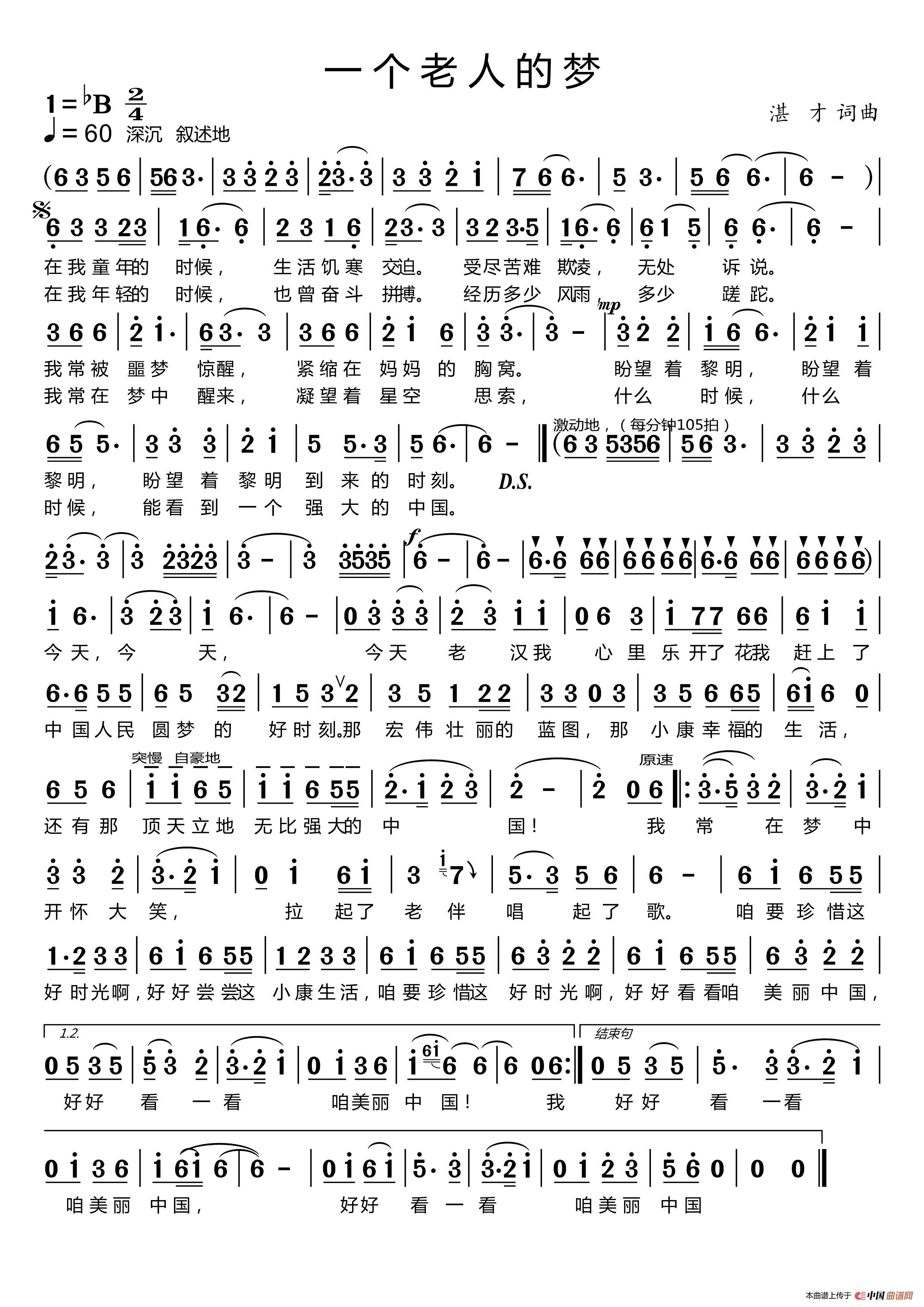 关于《一个老人的梦》曲谱的评论