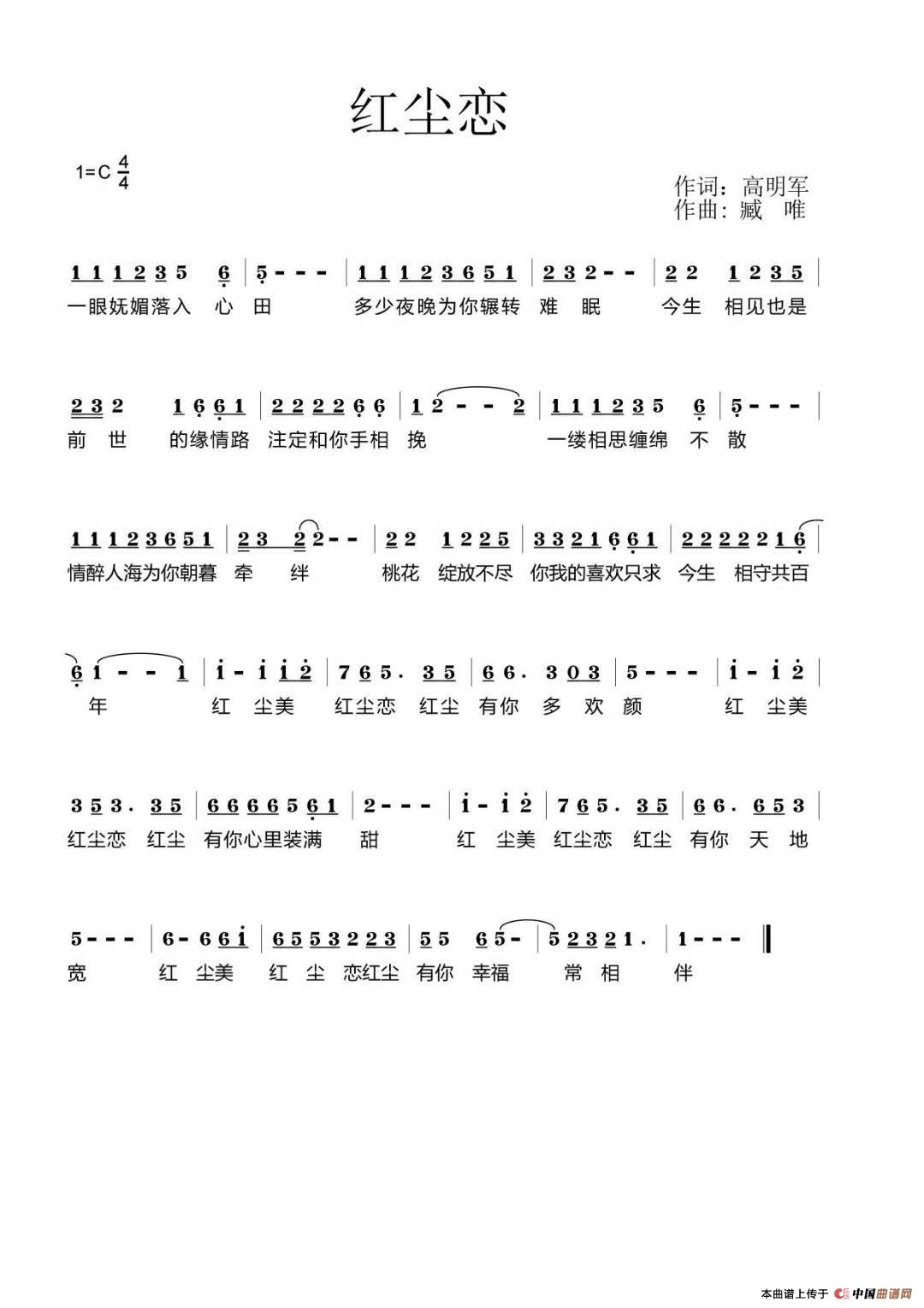 关于《红尘恋》曲谱的评论