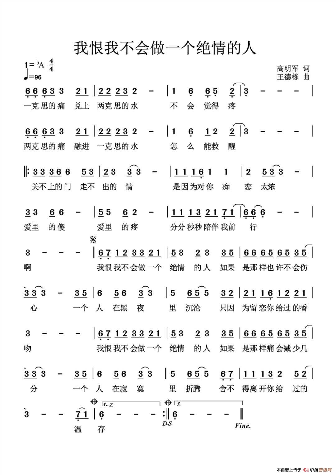 关于《我恨我不会做一个绝情的人》曲谱的评论