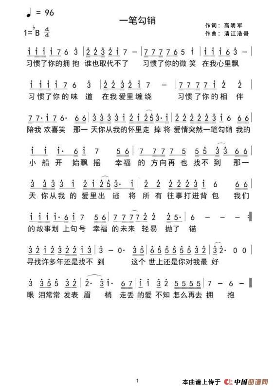 关于《一笔勾销》曲谱的评论