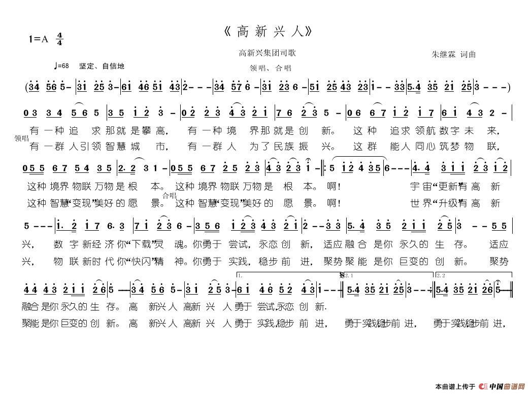 关于《高新兴人》曲谱的评论
