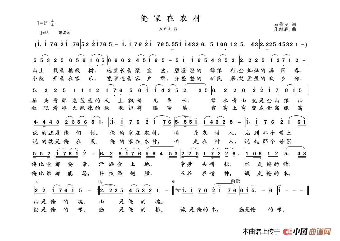 关于《俺家在农村》曲谱的评论