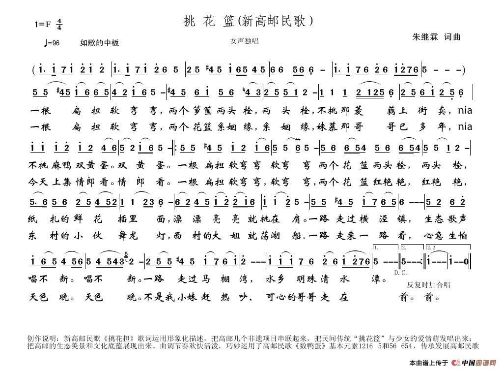 关于《新高邮民歌《挑花篮.》》曲谱的评论