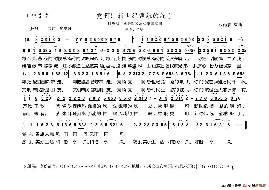 关于《党啊!新时代远航的舵手》曲谱的评论