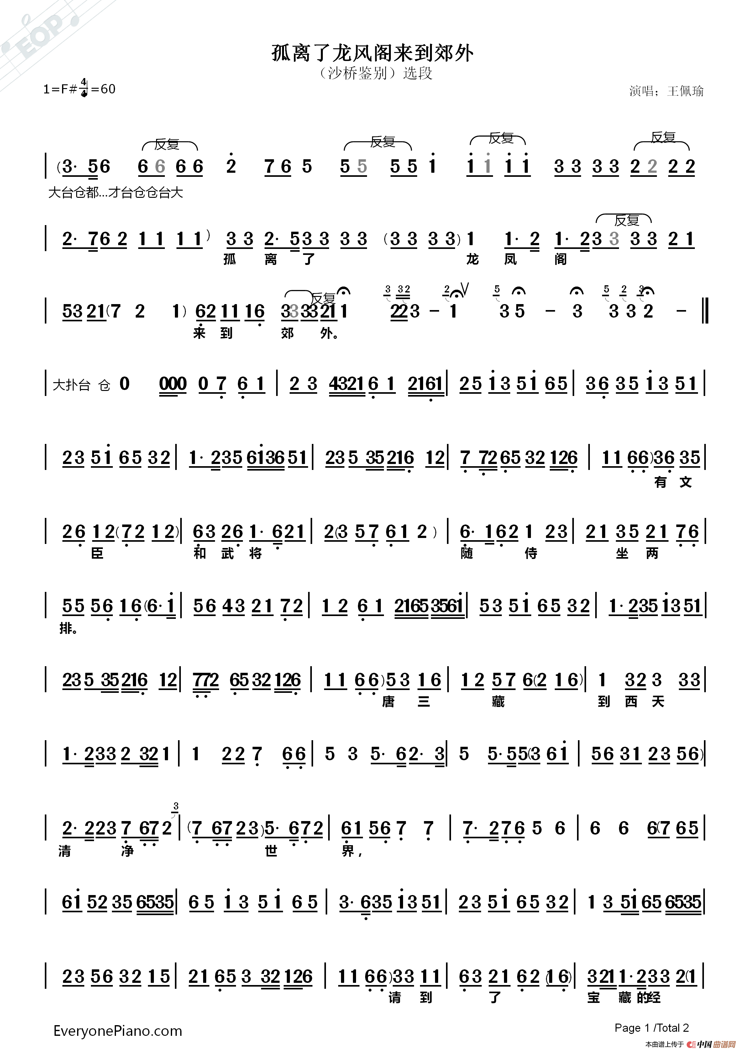 关于《孤离了龙凤阁来到郊外》曲谱的评论