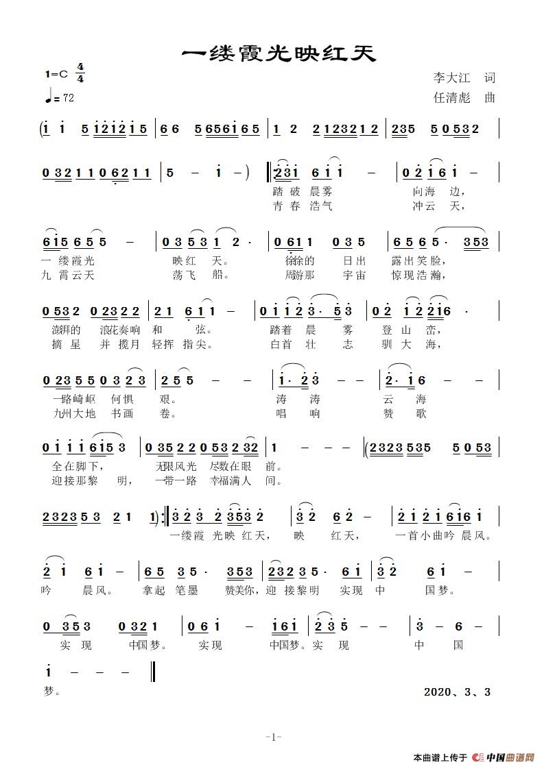 关于《一缕霞光映天红》曲谱的评论