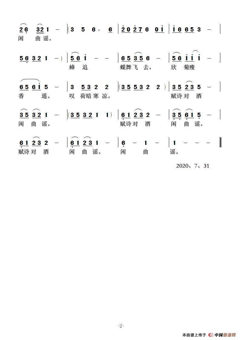 关于《忆旧游·雨媚荷娇》曲谱的评论