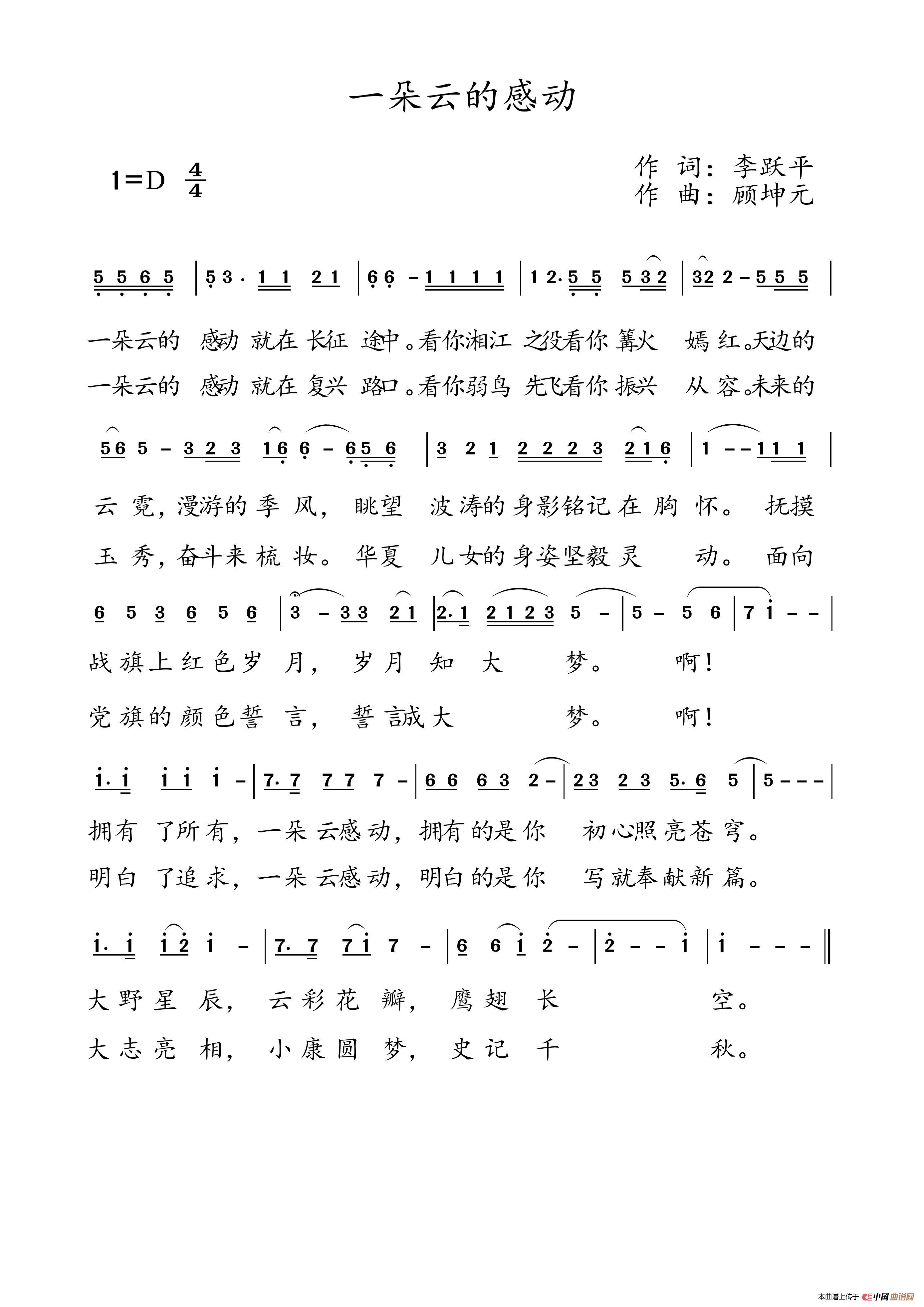关于《一朵云的感动》曲谱的评论