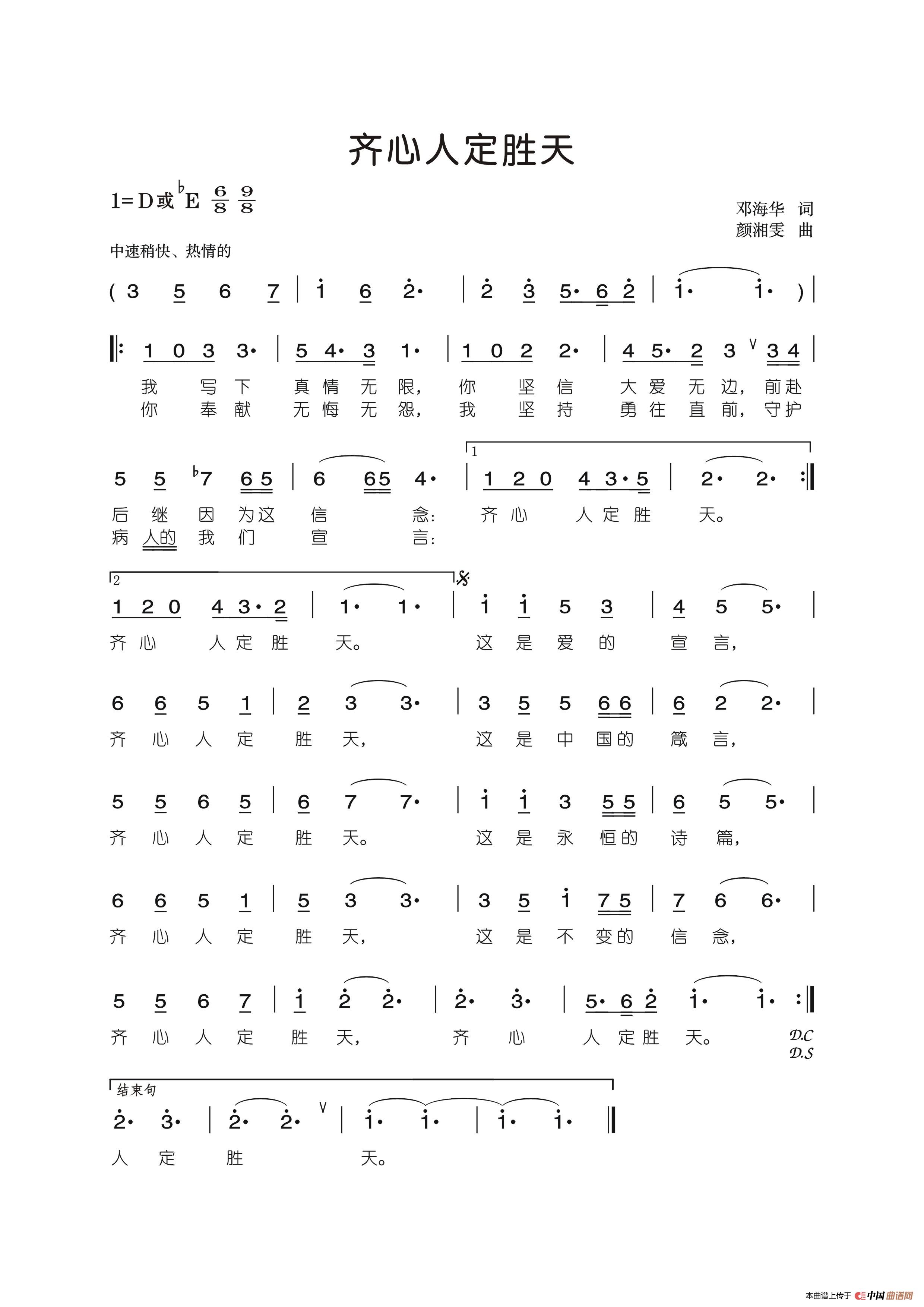 当前位置: 首页 谱友园地 谱友上传 齐心人定胜天(独)