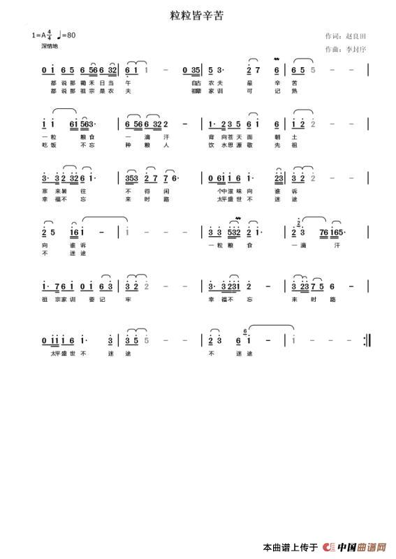 关于《粒粒皆辛苦》曲谱的评论