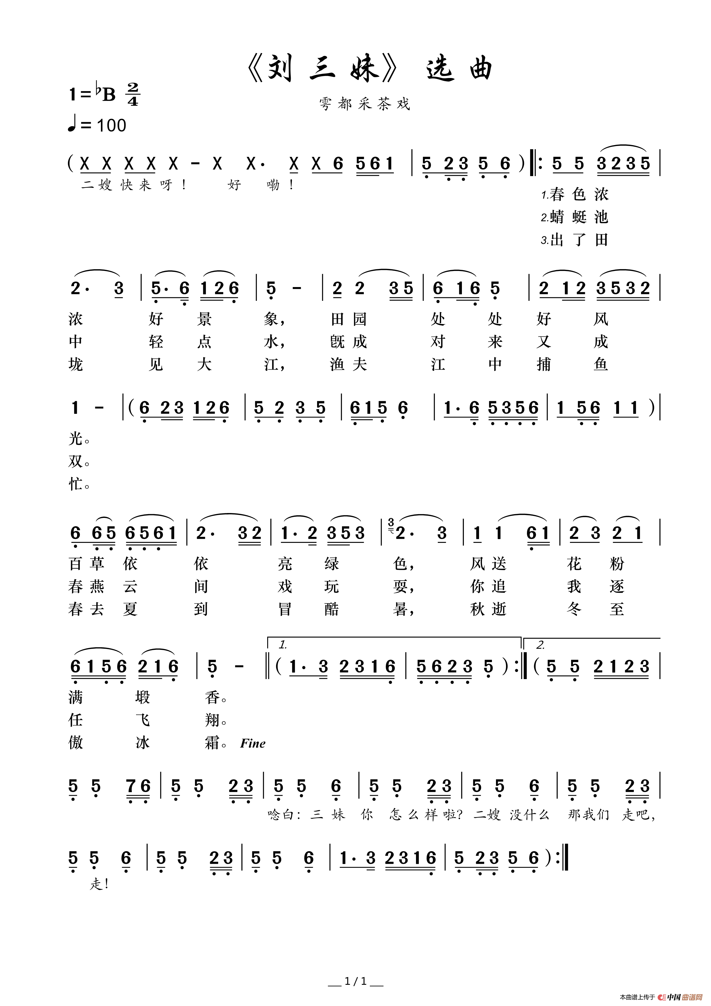 关于《赣南采茶戏《刘三妹》选曲》曲谱的评论