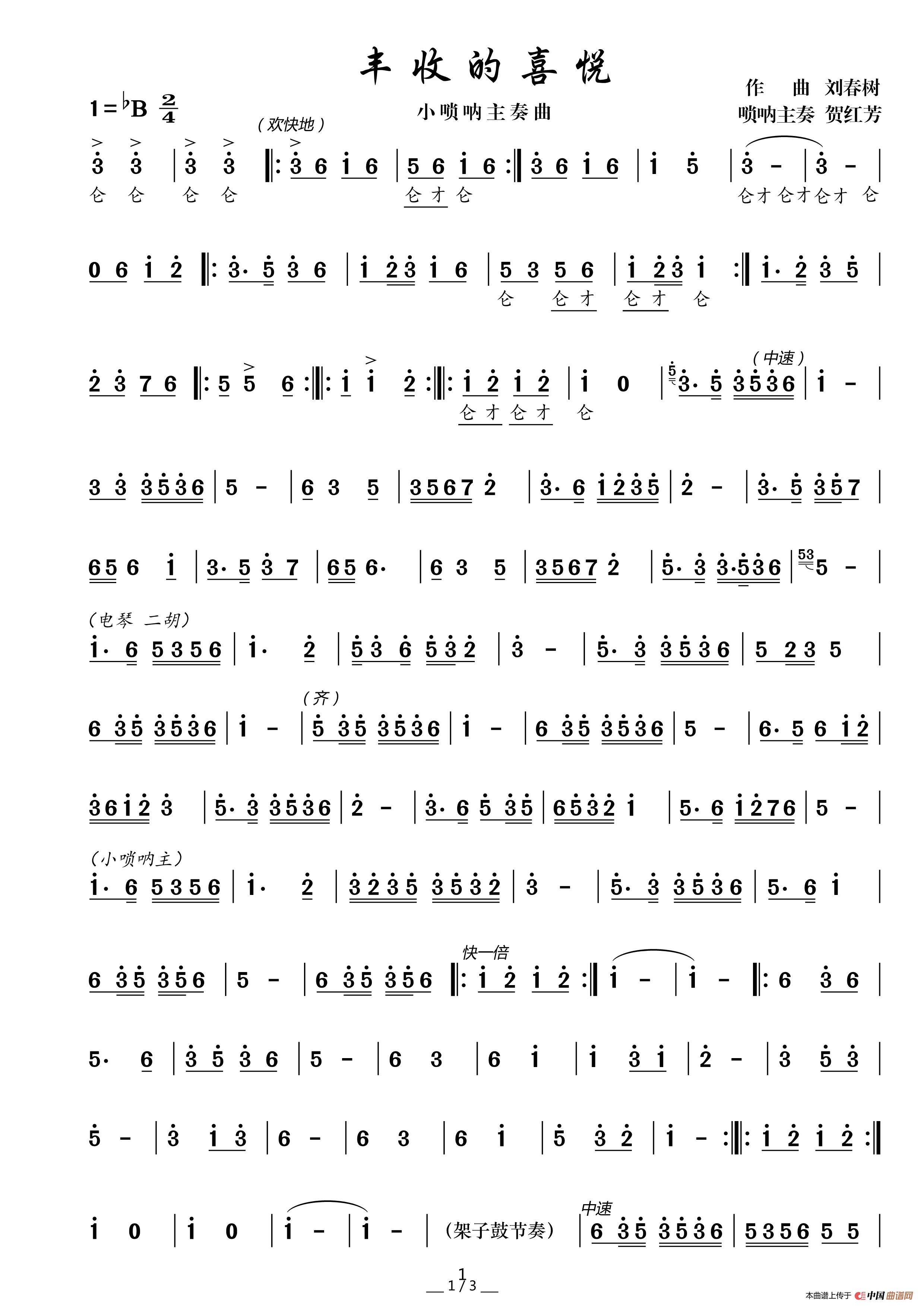 关于《丰收的喜悦》曲谱的评论