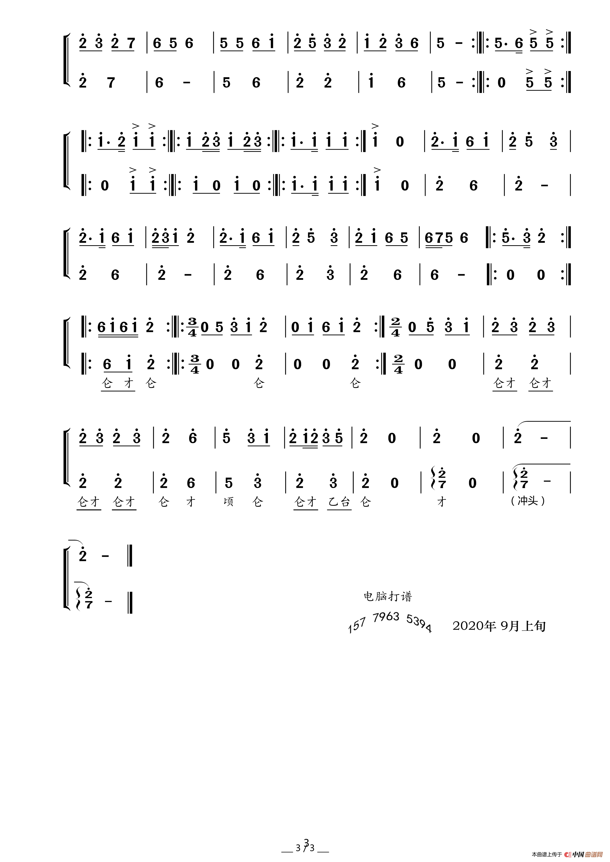提示:在曲谱图片上单击右键,选择“图片另存为...”即可将曲谱保存到您的电脑中,打印时候可将图片插入到WORD中,调整合适大小打印即可。