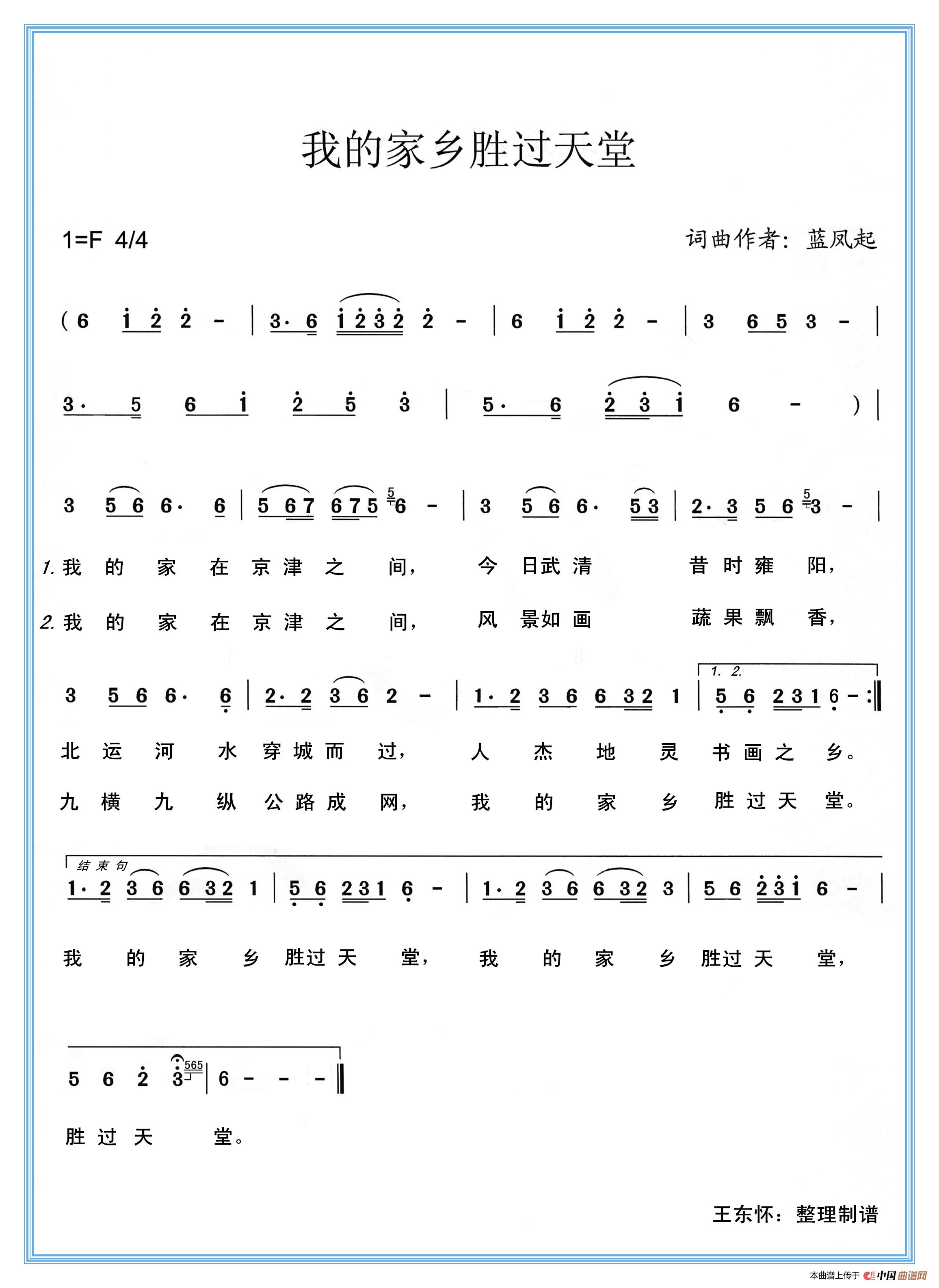 关于《我的家乡胜过天堂》曲谱的评论