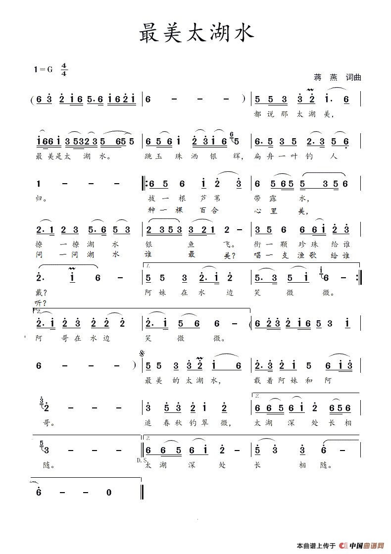 提示:在曲谱图片上单击右键,选择"图片另存为..."即可将曲谱保存到您的电脑中,打印时候可将图片插入到WORD中,调整合适大小打印即可。