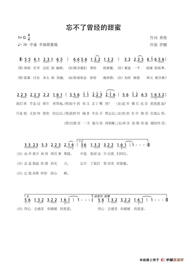 关于《忘不了曾经的甜蜜》曲谱的评论