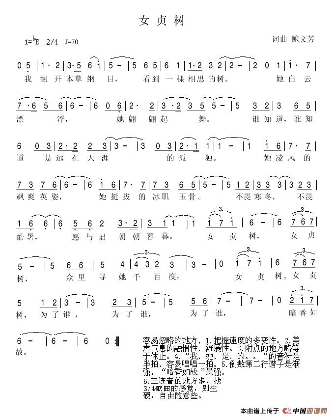 关于《女贞树》曲谱的评论