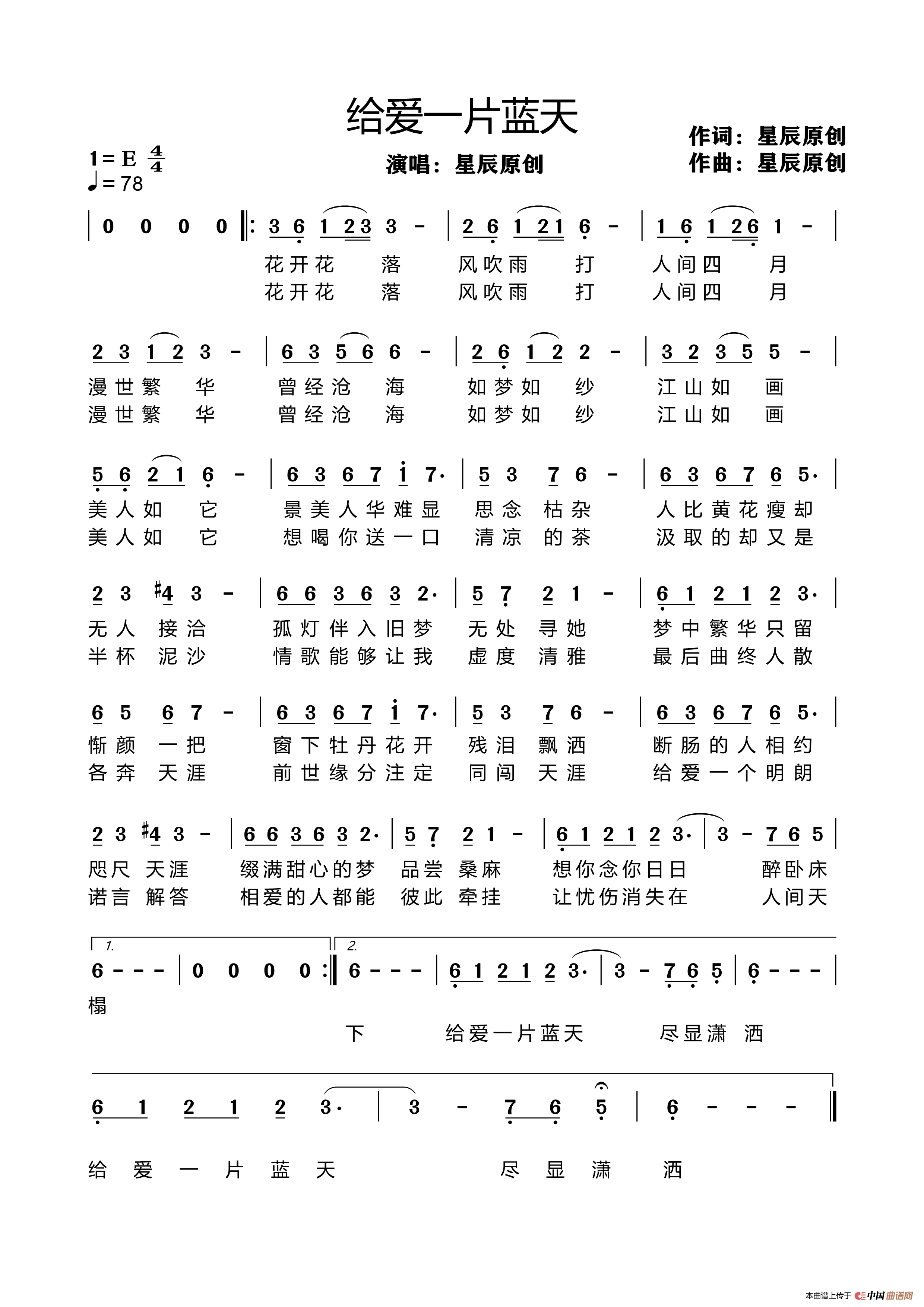 提示:在曲谱图片上单击右键,选择“图片另存为...”即可将曲谱保存到您的电脑中,打印时候可将图片插入到WORD中,调整合适大小打印即可。
