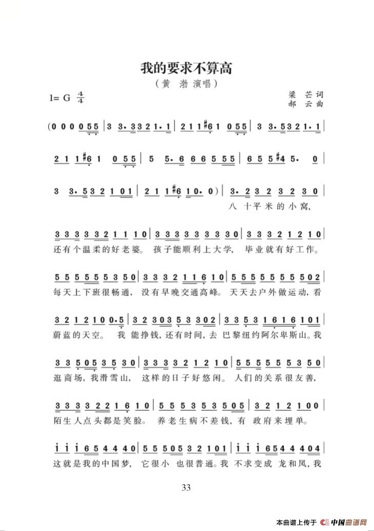 关于《我的要求不算高》曲谱的评论