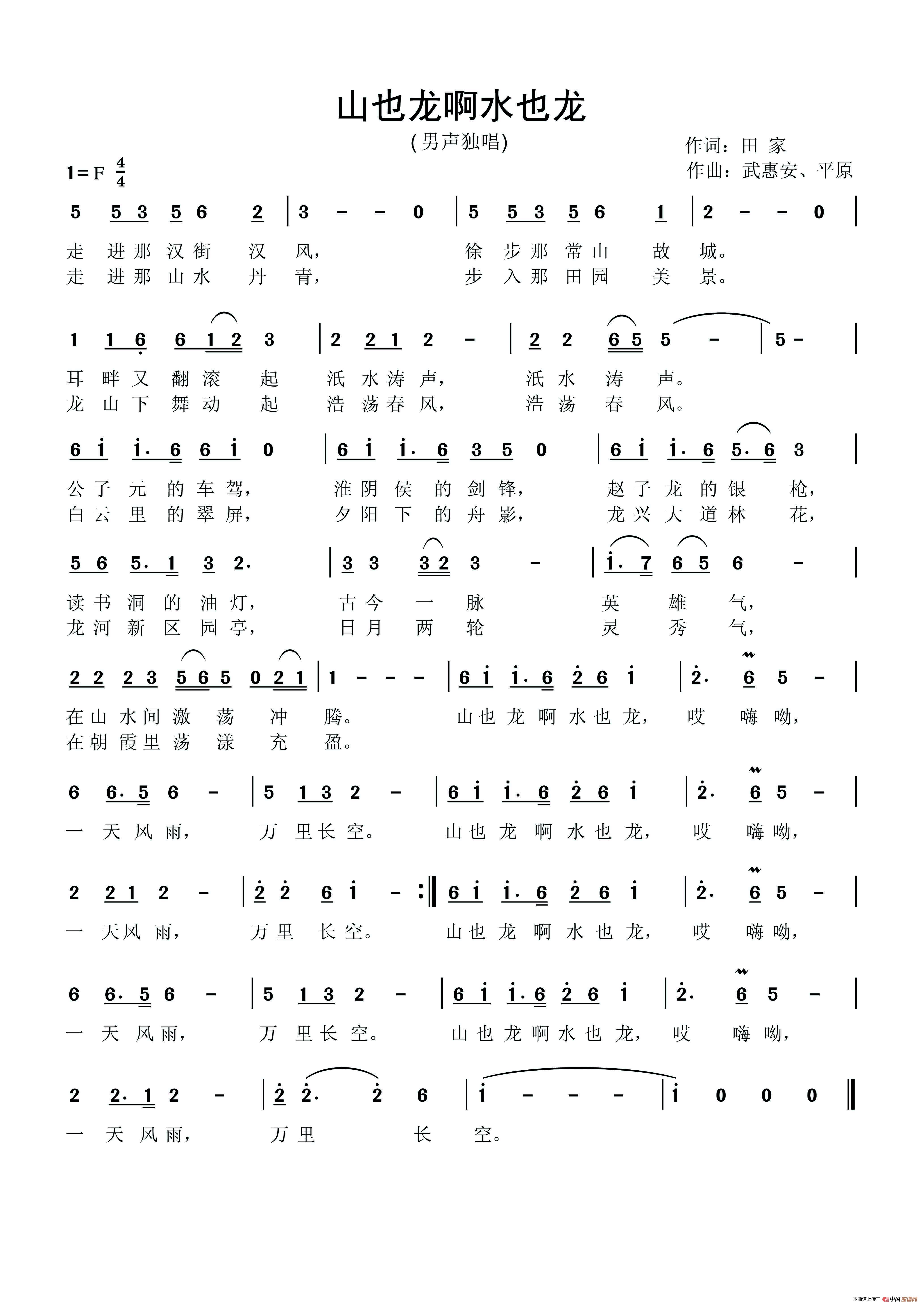 走进那汉街汉风,徐步那常山故城,耳畔又翻滚起汦水涛声,汦水涛声。------关于《山也龙水也龙》曲谱的评论