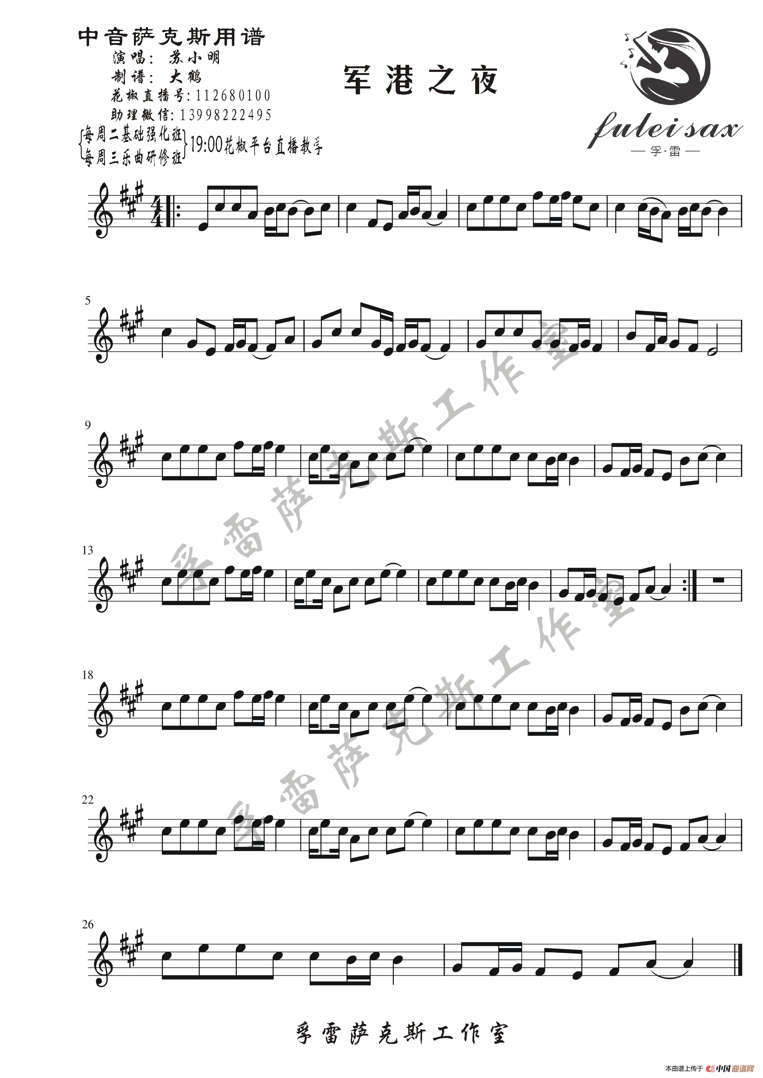 提示:在曲谱图片上单击右键,选择“图片另存为...”即可将曲谱保存到您的电脑中,打印时候可将图片插入到WORD中,调整合适大小打印即可。