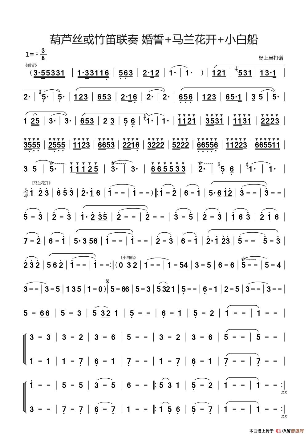 关于《葫芦丝或竹笛联奏 婚誓+马兰花开+小白船》曲谱的评论