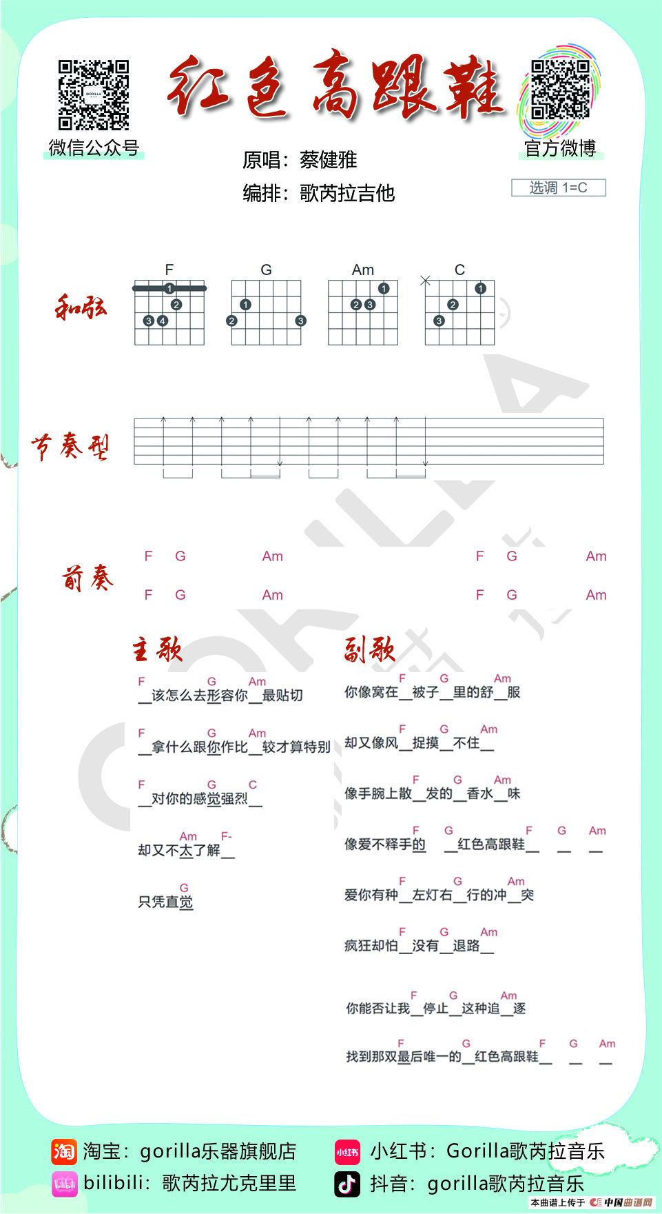《红色高跟鞋》-蔡健雅(吉他曲谱)