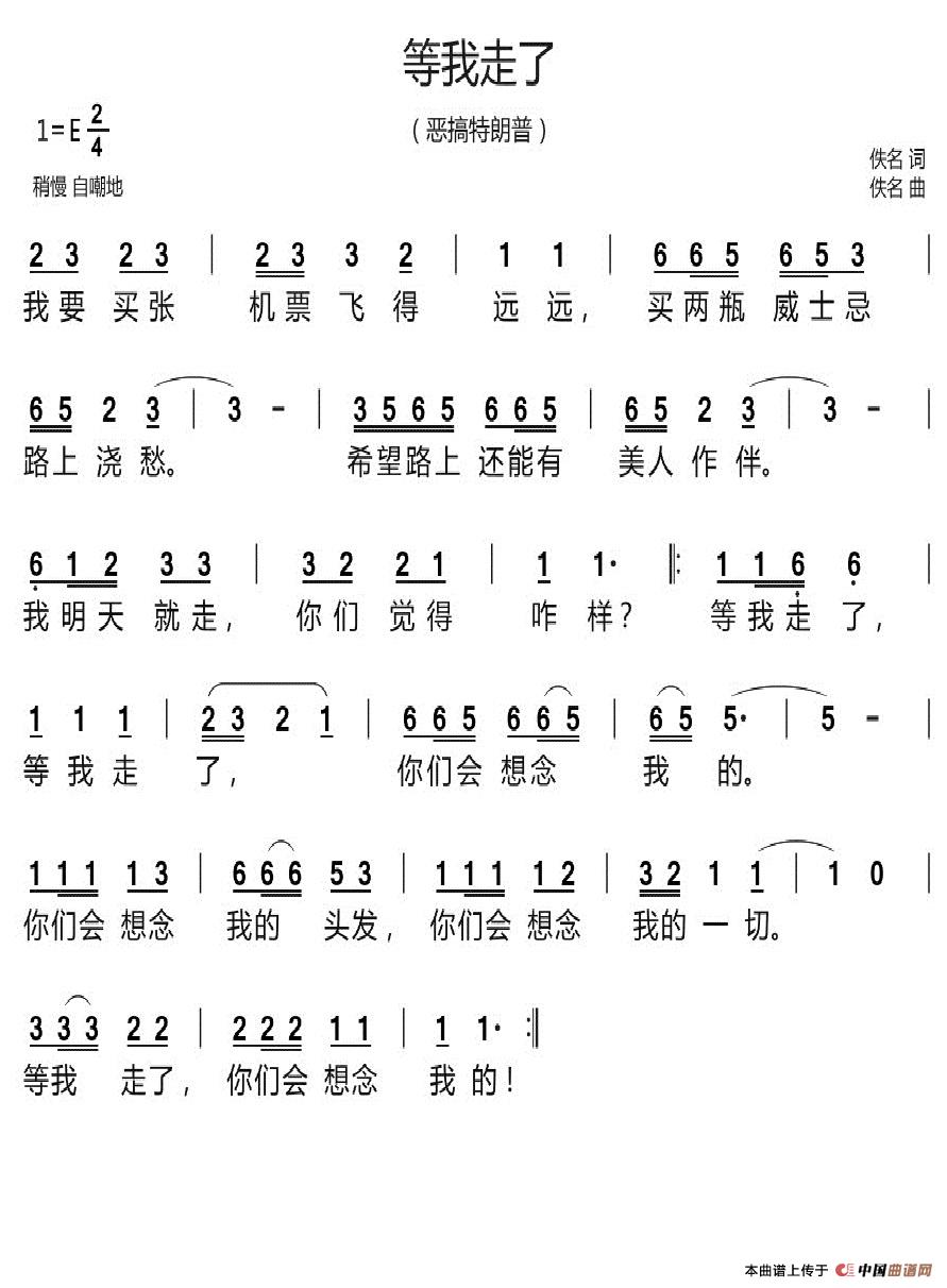 请搜索<等我走了>,出现(等我走了特朗普配音),点击。有视频,50秒长度。 [回复]
