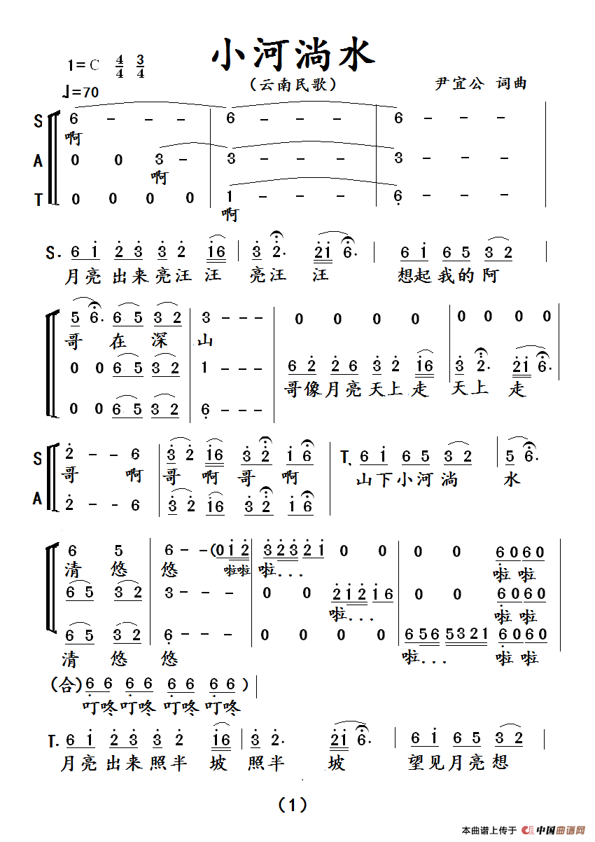 关于《小河淌水(三声部)》曲谱的评论