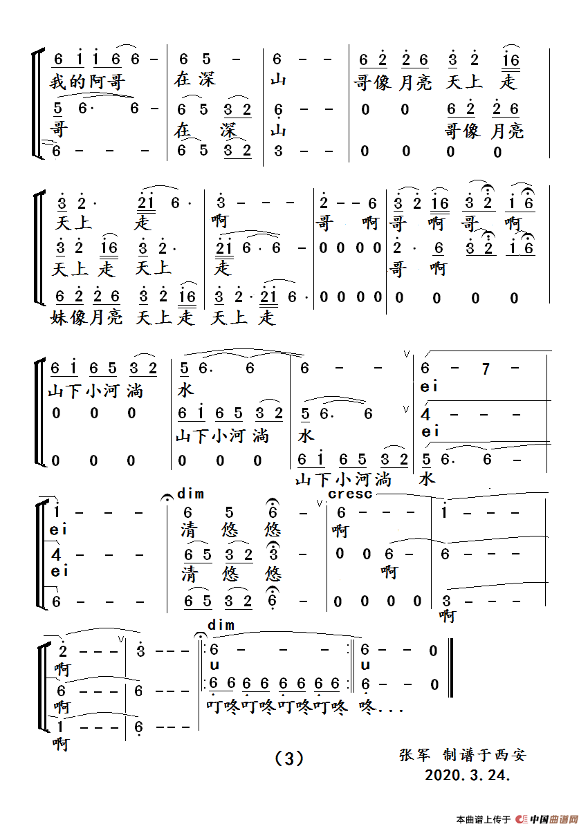 小河淌水(三声部)
