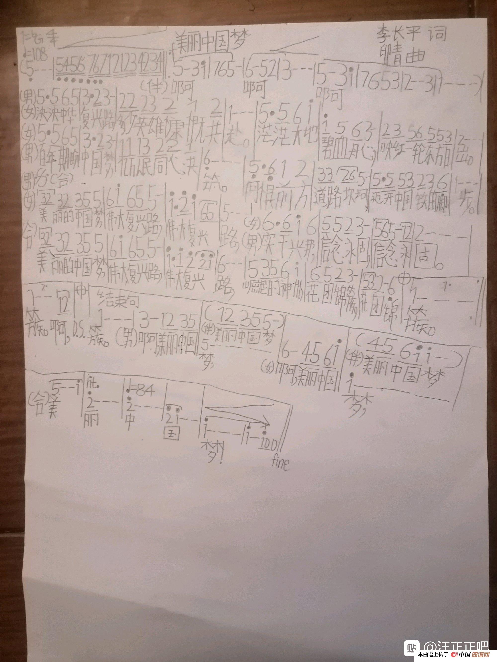 给我也要这个“美丽中国梦 汪正正 郑咏”的曲谱也要周盛耒一样!。 [回复]
