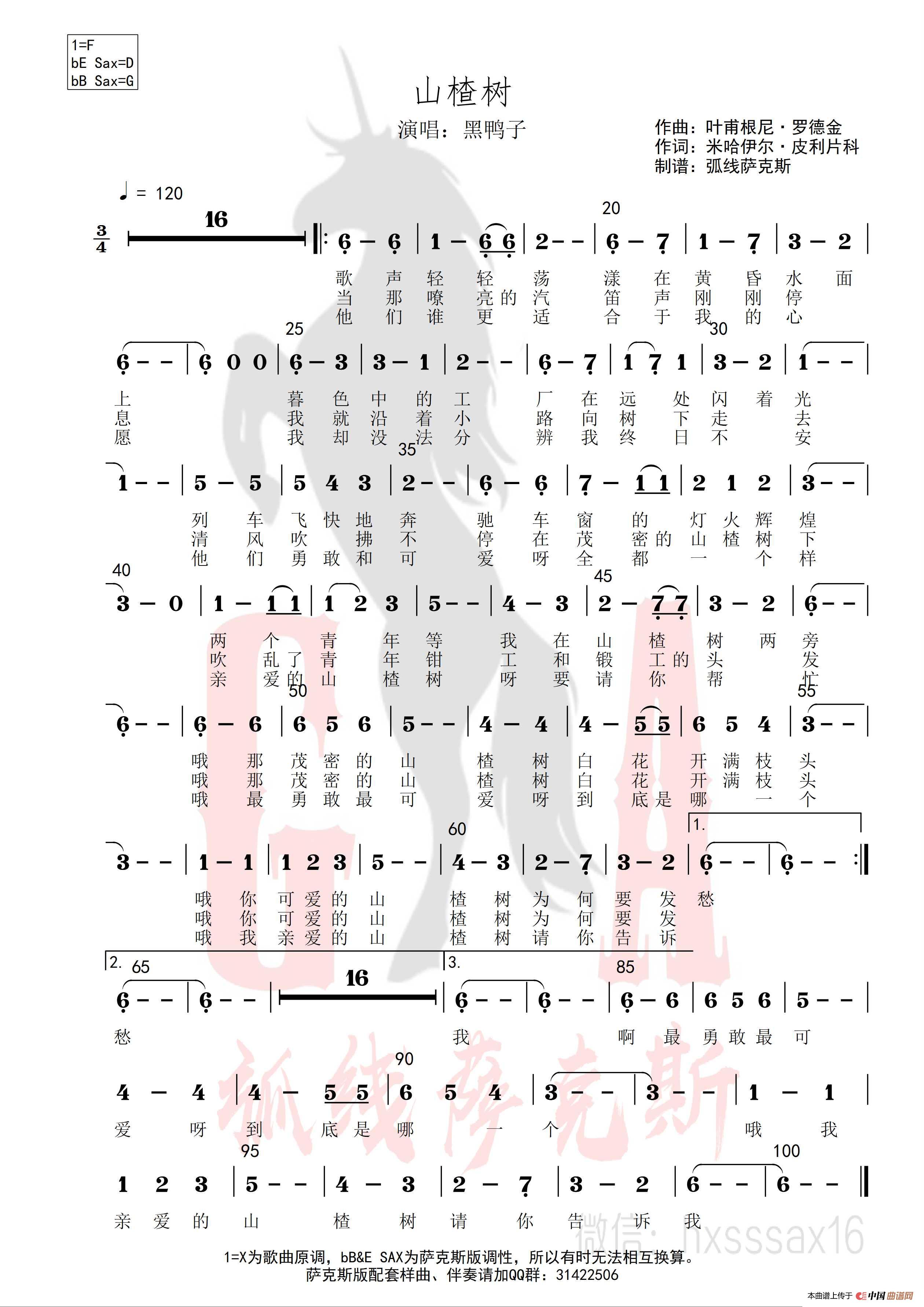 提示:在曲谱图片上单击右键,选择“图片另存为...”即可将曲谱保存到您的电脑中,打印时候可将图片插入到WORD中,调整合适大小打印即可。